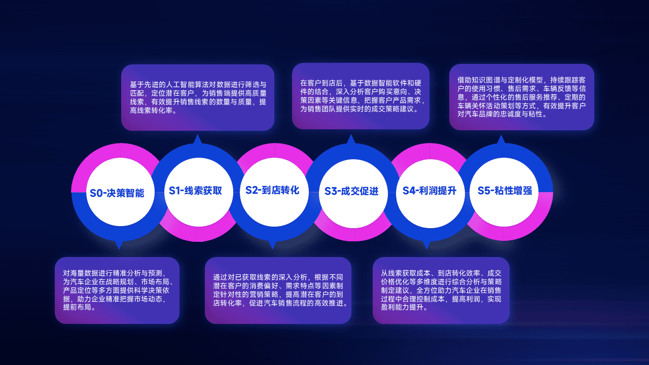 通过拓宽潜在客户来源、、、优化线索分配并提高到店转化率,,,以增强销售效率。。。同时,,利用线索数据不断优化分析模型,,有效提升转化率,,扩大营销影响力。。。。